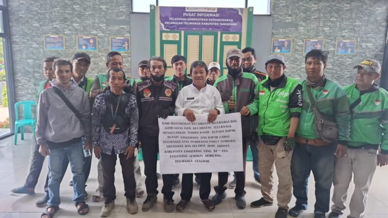 KABUPATEN TANGERANG, ONLINEPANTURA.COM – Dalam Rangka menjalin sinergitas dengan driver Ojol, Pemerintah Daerah Kabupaten Tangerang melalui Pemerintah Kecamatan Teluknaga membagikan bantuan paket sembako kepada pengemudi ojek online (Ojol).