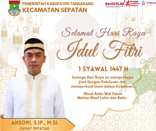 KABUPATEN TANGERANG, ONLINEPANTURA.COM – Selamat Hari Raya Idul Fitri 1447 Hijriah/2026 Masehi, Segenap Jajaran Pegawai Pemerintah Kecamatan Sepatan, Kabupaten Tangerang Provinsi Banten mengajak masyarakat khususnya Kecamatan Sepatan dan umumnya Kabupaten Tangerang untuk bersama-sama meningkatkan Ketaqwaan dan mempererat kebersamaan di Hari Idul Fitri 1447 Hijriah.