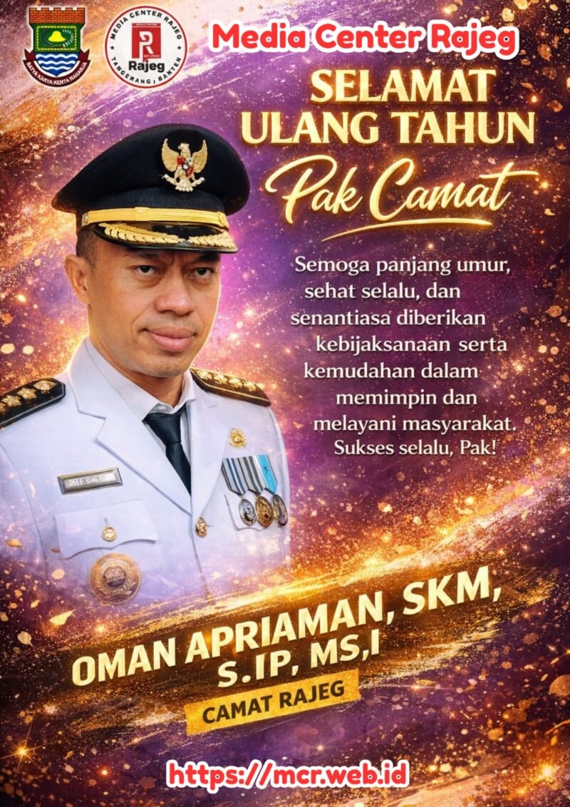 Saat ini sebagai Camat Rajeg Oman Apriaman Berulang tahun yang ke-49 Tahun berbagai ucapan selamat berdatangan salah satunya dari rekan-rekan media yang tergabung di Media Senter Rajeg (MCR). Minggu (05/04/2026).