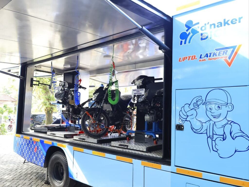 Bupati menjelaskan bahwa mobil training servis motor ini disiapkan untuk mendekatkan layanan pelatihan keterampilan kepada masyarakat Kabupaten Tangerang, khususnya bagi mereka yang membutuhkan pengetahuan dan keahlian bengkel motor tanpa harus datang ke Balai Latihan Kerja (BLK).