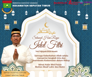 KABUPATEN TANGERANG, ONLINEPANTURA.COM – Selamat Hari Raya Idul Fitri 1447 Hijriah/2026 Masehi, Camat Sepatan Timur Kabupaten Tangerang Miftah Shuritho.SSTP.MM mengajak masyarakat untuk meningkatkan Ketaqwaan dan Mempererat Kebersamaan di Hari Idul Fitri.